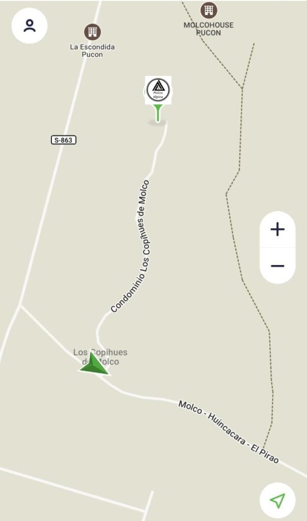 Nos encontramos a 12 kilometros de villarrica y 12 kilometros de pucon, por ruta que une ambas ciudades en la Localidad de Molco, subiendo por camino a Huincacara con segunda Faja.